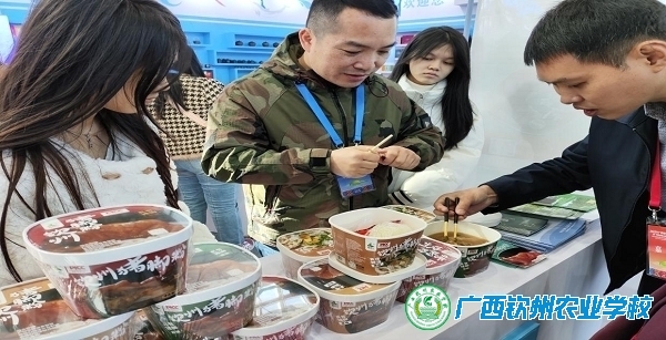 (图为利佰兴公司总监杨钊向顾客讲解钦州猪脚粉 张家标 摄)