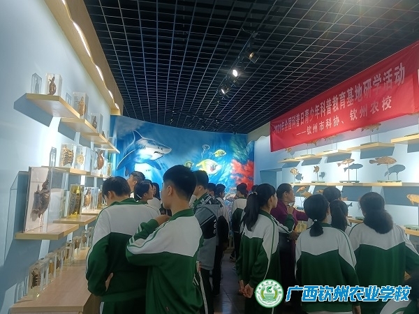 11月22日下午,钦州市第三中学生物兴趣班50名学生到我校参观学习。在我校教务科的安排下,50名学生先后参观了昆虫馆、水产标本馆、农史馆和校史馆这四个我校具有代表性的展馆。在讲解员的引导下,同学们了解了不同生物的生态习性、生长环境和保护意义。