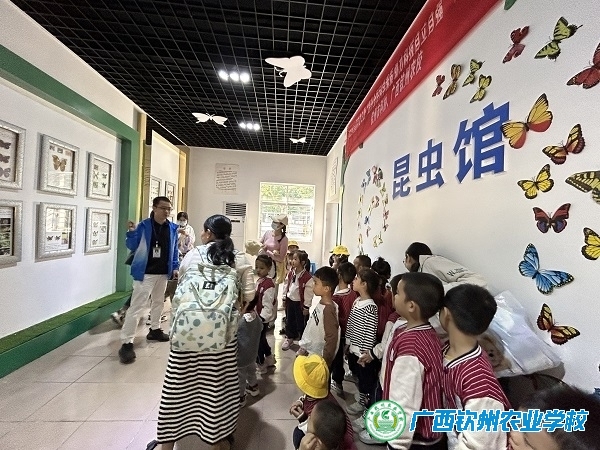 11月25日,钦州市天麓湖幼儿园来我校开展农耕研学活动。小朋友们先后参观了农史官、昆虫馆、水产标本馆,体验了草头娃娃的制作。本次研学活动由各场馆的专业老师负责讲解,农史馆配备了学生讲解员,由幼保专业学生全程带队,既保证了小朋友们安全、有序参观,有一个良好的参观体验,也使得小朋友们了解了农耕文化,观察学习昆虫的特点与习性,认识了许多水生生物,体验到了动手的乐趣,让小朋友们加深对自然的认识,亲近自然、热爱自然,感受劳动的快乐、知识的趣味,得到了家长的一致好评。