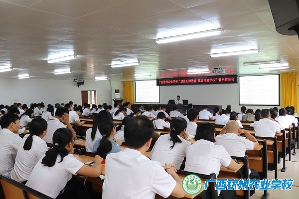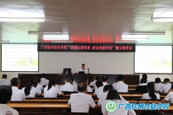 大会上,全体教师一起认真观看广西党风廉政教育中心制作的《廉政广西》电教片第048期《保持赶考“清醒” 清除国企“蛀虫”》,并签订《广西钦州农业学校“杜绝享乐奢靡四个方面突出问题”承诺书》《广西钦州农业学校“廉洁从教 从我做起”承诺书》。