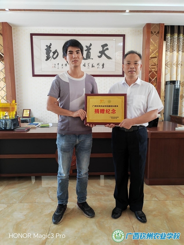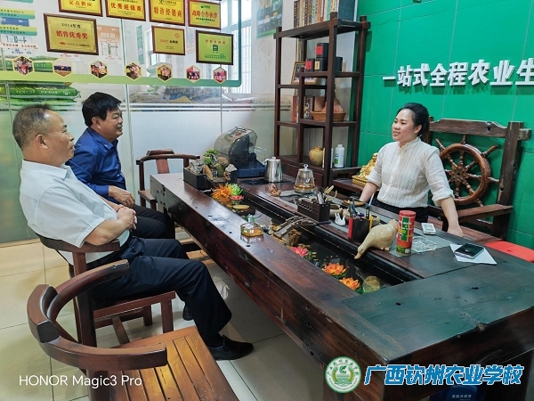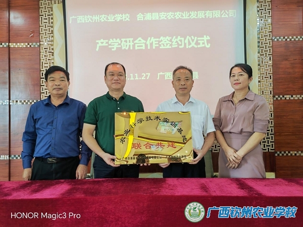 伍国樑校长一行四人,先到合浦星岛湖的合浦安农农业发展有限公司总部,由伍校长与该公司庞乃雄总经理,共同签署了产学研合作协议。从此,校企双方正式挂牌确立共建教学实训见习基地,丰富了学校教学实训硬件基础,为确保学校教学质量给予保驾护航,为提高学校教学水平提供硬件支撑。同时,伍校长还对庞总经理在学校九十华诞之时的慷慨捐赠授予其捐赠荣誉牌匾以作感谢。