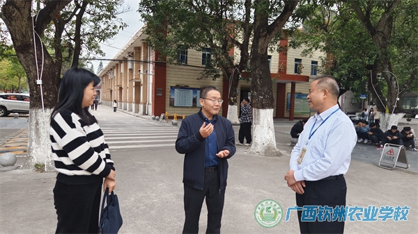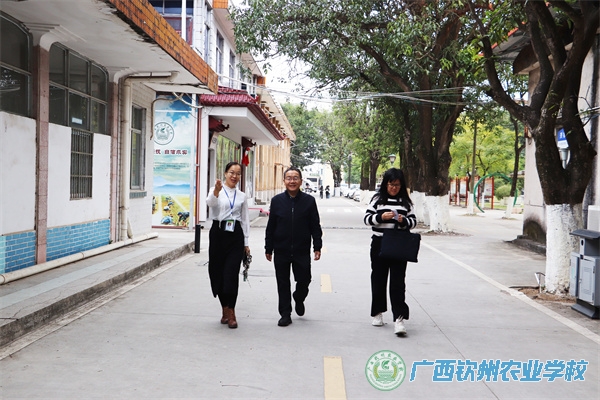 钦州市侨联黄永忠副主席(中)一行正在参观校园