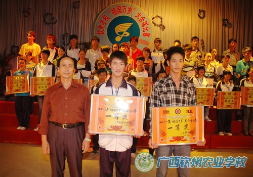 覃一静副校长为获得二等奖的班级颁奖