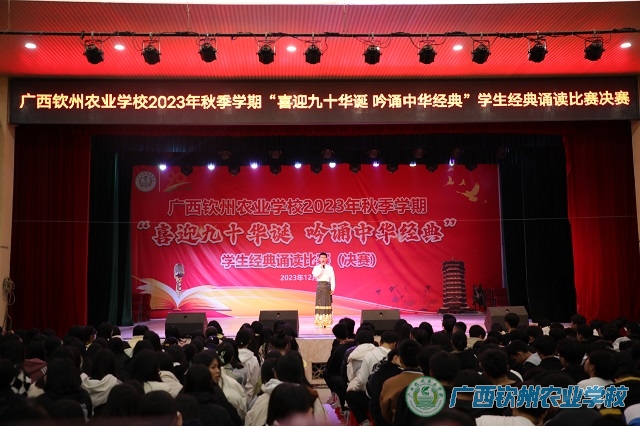 2023年12月5日晚20:00,我校2023年秋季学期“喜迎九十华诞 吟诵中华经典”学生经典诵读比赛决赛在学校大礼堂举行。伍国樑校长、邓业斌副校长以及部分科室负责人出席了赛事活动。有选手进入决赛的班级及其班主任在现场观看了比赛,没有选手进入决赛的班级在本班教室收看现场直播。