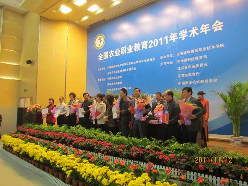 2011年11月12日至15日,由中国职业教育学会农村与农业职业教育专业委员会、全国农业职业技术教育研究会联合主办的全国农业职业教育2011年学术年会在江苏畜牧兽医职业技术学院召开,本次会议除了围绕“贯彻《国家中长期教育改革和发展规纲要》,深化改革,推动农业职业教育协调发展”进行了深入探讨和研究外,还对荣获第二届全国农业职业教育教学名师奖的80位教师(高职57名,中职23名)给予了表彰,我校马军、王明总两位老师获此殊荣。