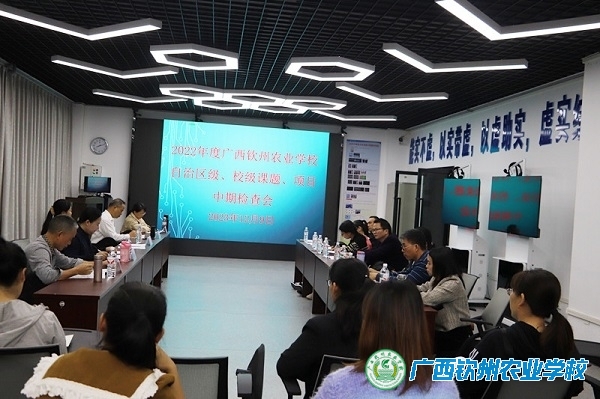 本次邀请了北部湾职业技术学校科研规划科科长、正高级讲师王丽丽、钦州幼儿师范高等专科学校高级讲师、产教融合与创新创业中心主任曾霄令和本校退休高级讲师何祖猛三位评审专家。此次课题项目的中期检查含广西职业教育教学改革研究项目2项,学校教育教学改革项目3项,广西教育科学规划专项课题4项(3个重点项目)共9项。伍国樑校长亲临现场指导,由教研中心主任彭秀主持。