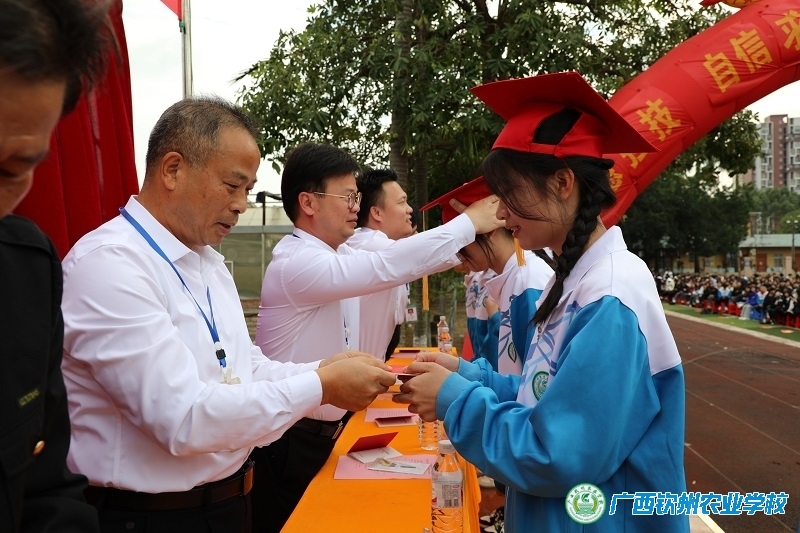 学校领导、老师、家长为成年学生戴成年帽
