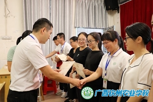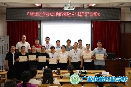首先,学生科负责人黄筱彦宣读了《广西钦州农业学校班主任“以老带新”活动实施方案》以及班主任师徒结对人员名单,说明了师徒结对的具体学习内容和重要性。随后,由2022级年级组长刘莹莹老师作为师傅代表发言。紧接着,由徒弟代表利小兰老师发言。她表明自己作为新任班主任将会虚心向师父学习,提高自己的专业素养,尽快适应班主任工作。最后,邓业斌副校长为这15位师傅颁发聘书并合影留念。