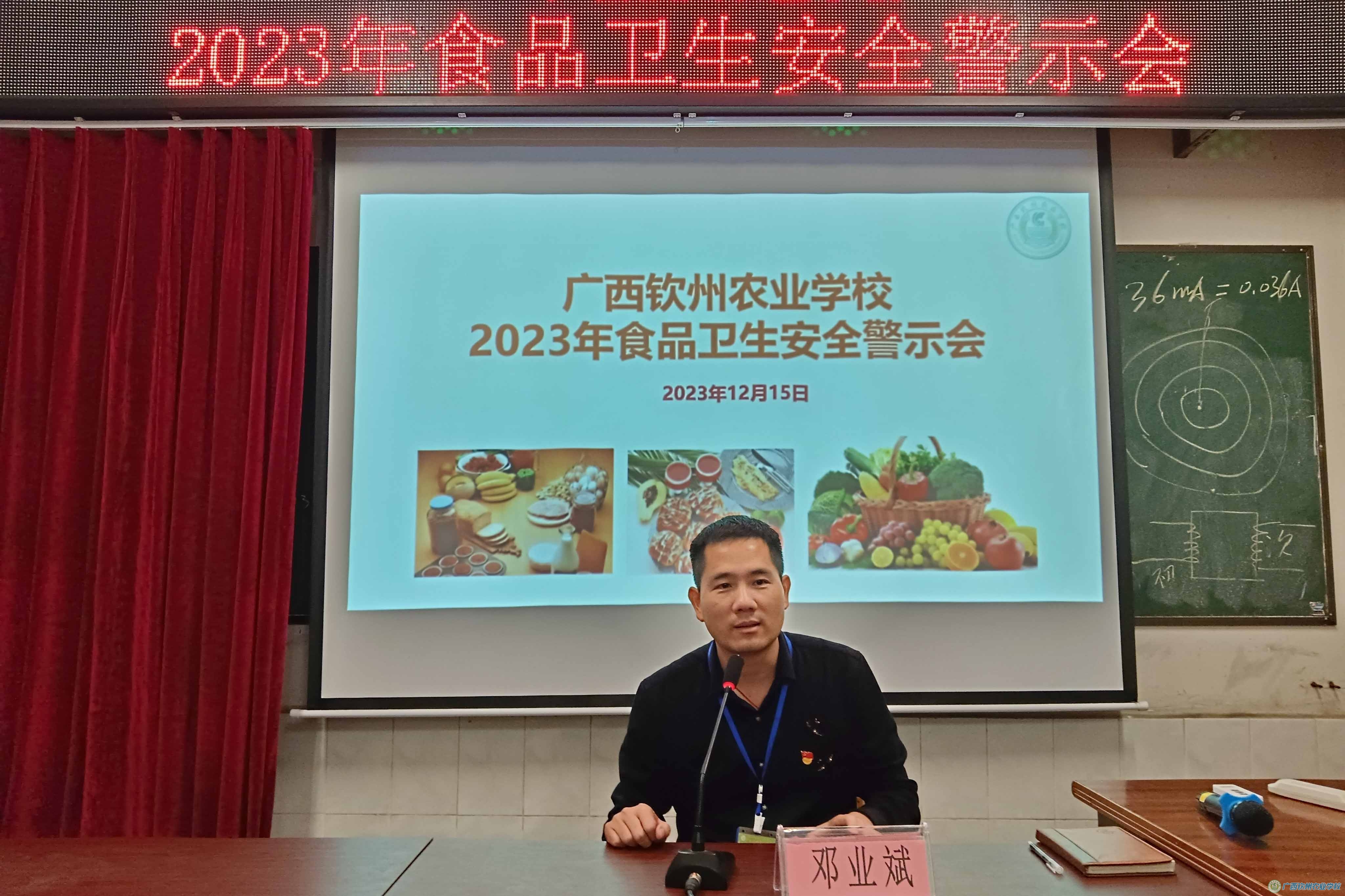 12月15日,我校在阶梯教室召开了2023年秋季学期学校食品安全警示会。学校副校长邓业斌出席会议,总务科副科长蒙家星、食品安全管理员吴益民、食堂及超市全体从业人员参加了会议。