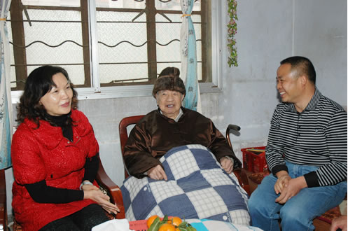 1月11日上午,钦州市总工会杨玉红副主席一行3人代表市总工会来我校开展春节慰问活动。杨副主席首先向我校全体教职工祝贺新春佳节,并赠送慰问金。随后,杨副主席在学校主持工作的伍国樑副校长和覃一静副校长、工会陆武昌主席的陪同下慰问了93岁高龄的全国劳动模范、老校长吴恒舜同志。