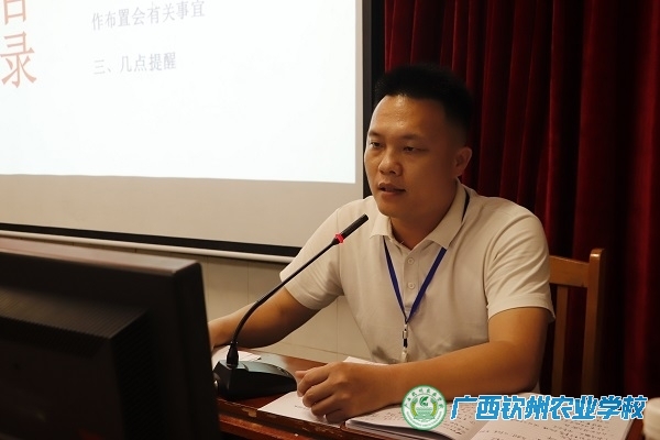 会上,学生科科长陈贵才向全体班主任们传达了学校2024年安全工作布置会相关事宜和《2024年钦州市教育系统预防中小学生溺亡工作方案》文件精神,并结合近期我国多地发生的一些校园安全事故,对学校的安全工作进行了详细部署。一是关于防溺水教育。包括加强宣传教育、加强家校联系和加强文件学习等方面;二是关于用电安全。不允许使用大功率充电宝,严查私拉乱接;三是关于个人极端事件。要求3月26日前完成学生心理健康排查,专人负责学校心理咨询室;四是关于几点工作提醒。包括学生资助认证、材料收集、请假、出入校门时间、班主任执勤安排等。随后,学生科副科长、保卫科负责人曾庆朗进行安全工作补充,他强调了学生夜晚按时归校问题、电动车的规范以及用电方面的安全。