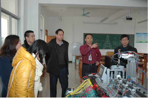 全区贫困村劳动力转移培训基地认定评估会现场主持学校工作的伍国樑副校长向评估专家组介绍了学校的基本情况专家组认真听取汇报钦州市扶贫办曹传吉副主任在认定评估会上讲话主持学校工作的伍国樑副校长陪同专家组参观PLC实验室覃效敏副校长向专家组介绍学生实验作品主持学校工作的伍国樑副校长陪同专家组参观新建的牧医实验室合影留念