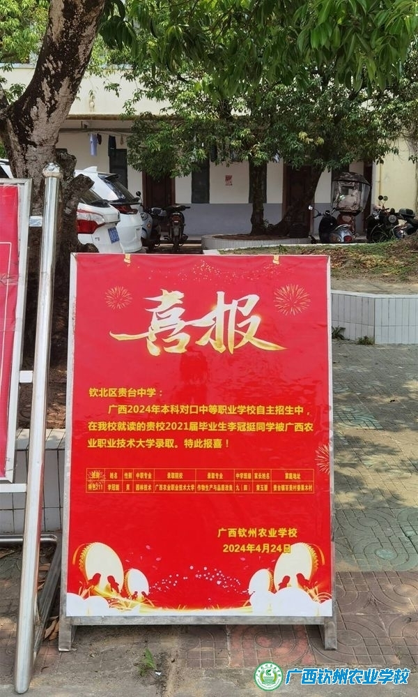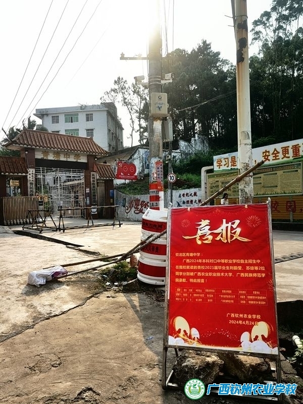 4月30日,我校招生与就业办黄冰主任一行三人前往钦州市钦北区各中学送喜报。此次送喜报活动是为了表彰钦北区各中学毕业生在我校2024年中职对口本科考试取得的优异成绩,同时也为加强我校与钦北区各中学之间的联系与合作。