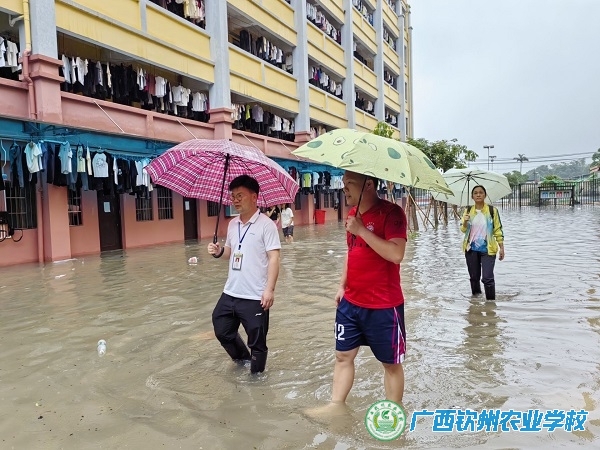 5月10日凌晨,钦州市普降大雨到暴雨,量极大、范围广、持续时间长,造成了城市内涝,我校部分区域出现不同程度的积水。为保障学校师生安全,我校领导第一时间赶到学校启动应急预案,采取措施,消除安全隐患。
