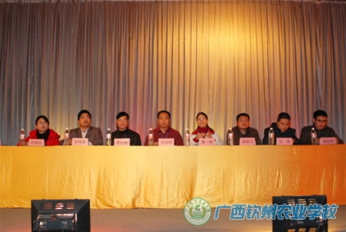 大会现场 领导嘉宾 覃一静副校长在会上作了动员讲话 教务科马军科长对新学期教学安排作介绍 学生科郑修营科长对新学期的学生工作作了部署 大会现场