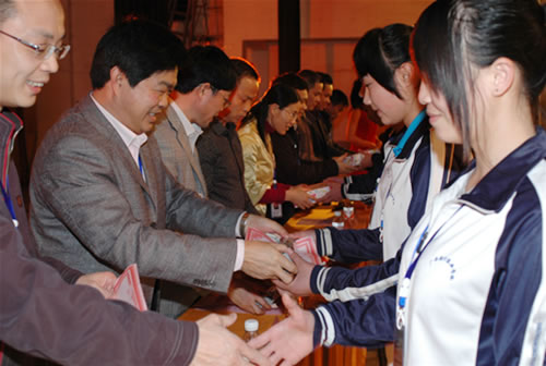 参会的领导嘉宾为获奖的学生颁奖