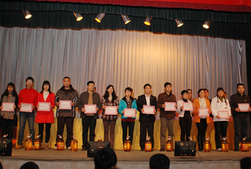 分管学生工作的覃一静副校长为获奖的学生颁奖