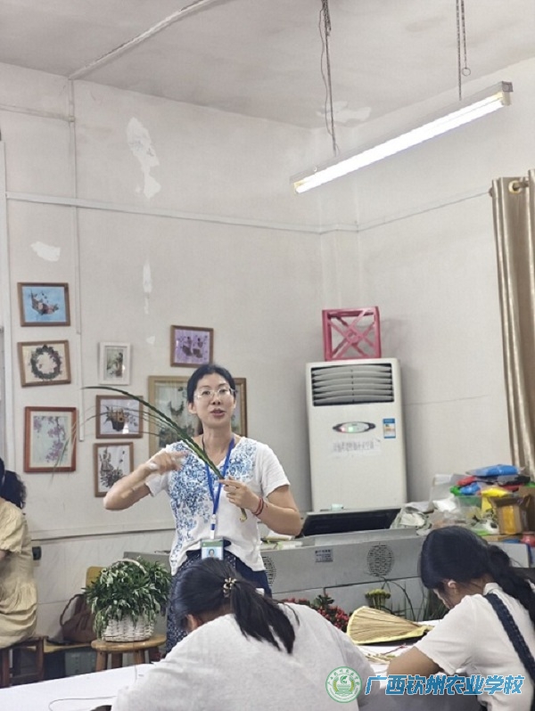 莫莉莉老师在给同学们讲解插花基本知识