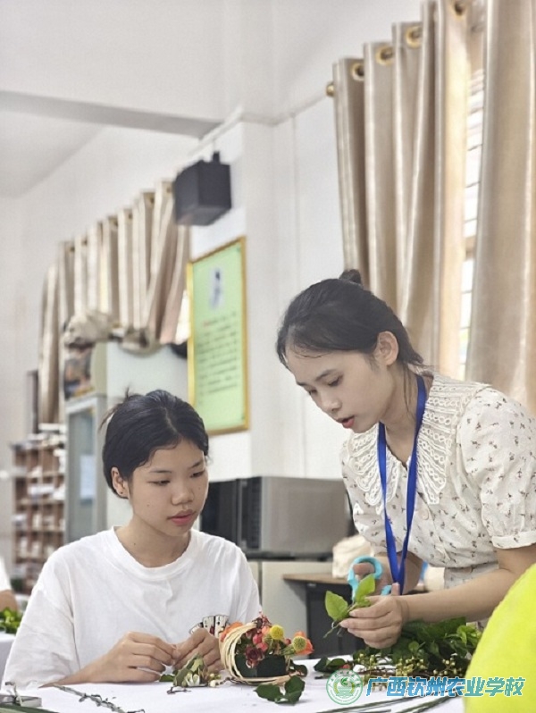 学生在完成插花作品