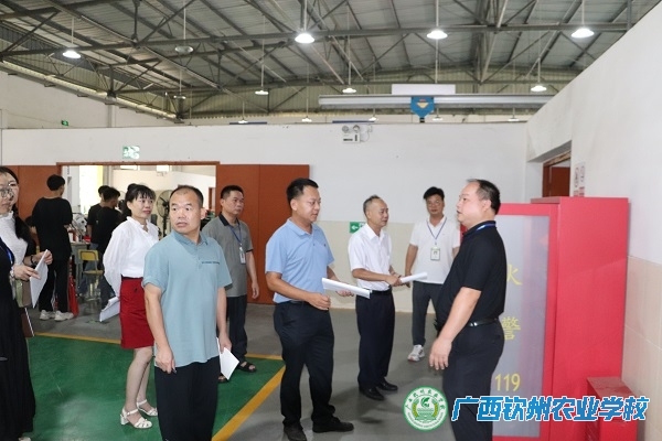 为贯彻落实党的二十大精神,确保中等职业学校实训室(含实验室,下同)安全稳定有序运行,按照党中央、国务院关于安全生产工作的决策部署,根据《自治区教育厅办公室关于开展2024年度广西中等职业学校实训室安全实地检查工作的通知》(桂教办〔2024〕624 号)、《钦州市教育局关于开展2024年度全市中等职业学校实训室安全实地检查工作的通知》(钦教职成〔2024〕19号)要求, 6月21日,钦州市教育局检查组到我校进行实训室安全实地检查。本次检查组组长为北部湾职校副校长梁华江,副组长为北部湾职校教务科副科长郑毅,成员为钦州市卫生学校安稳办主任苏敏、北部湾职校科研科副科长刘翠玲、钦州市教育局职成科干部覃晓鲜。我校副校长李运光及相关部门负责人参加汇报会并陪同检查。