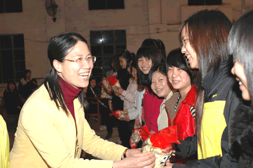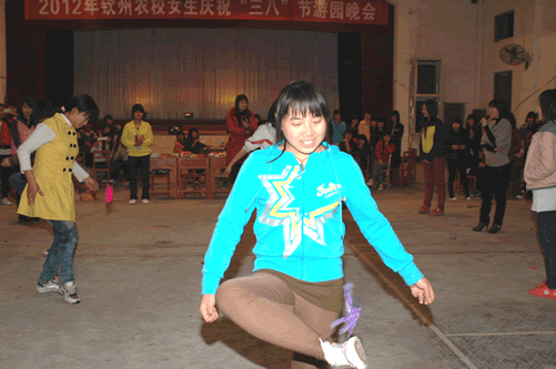 3月8日晚上,妇委会、学生科组织全体女生开展庆祝“三八”节游园晚会活动。游园晚会由妇委会主任黄小海、女工委员黄冰、学生科王白玉老师一起主持,覃一静副校长亲临现场指导,作了讲话,并为活动获奖同学颁奖,与学生同乐。晚会笑声不断,气氛热烈。