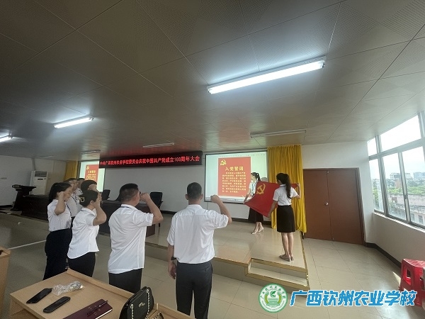 开课前,为庆祝中国共产党成立103周年,副校长李运光带领全体党员重温入党誓词。
