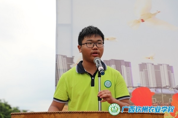 参训新生代表庞胤初发表了参训感言,表达了对学校领导、老师和军训教官的感谢,并表示在今后的中职生活里,会继续发扬军训中铸造的坚强意志、优良作风和刻苦精神,努力争先,创造佳绩。