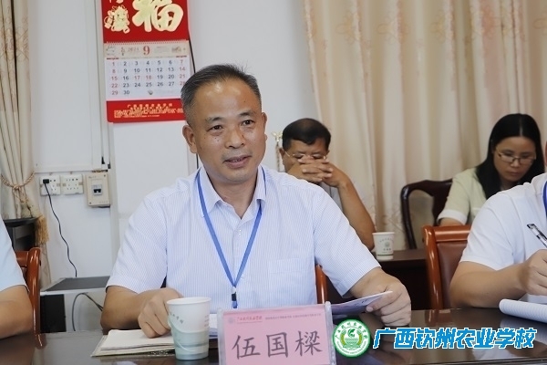 校长伍国樑对厅领导的到来表示热烈欢迎和衷心感谢,并从招生规模、教学质量、办学条件、专业建设、师资队伍建设、人才培养等方面对学校基本情况、工作成效及现存困境作了汇报。伍校长表示,学校将在厅党组的正确领导下,狠抓教育质量,强化育人成果,加快推进学校“双优计划”和五星级中职学校建设工作,为我区农业职业教育和乡村振兴发展做出应有的贡献。