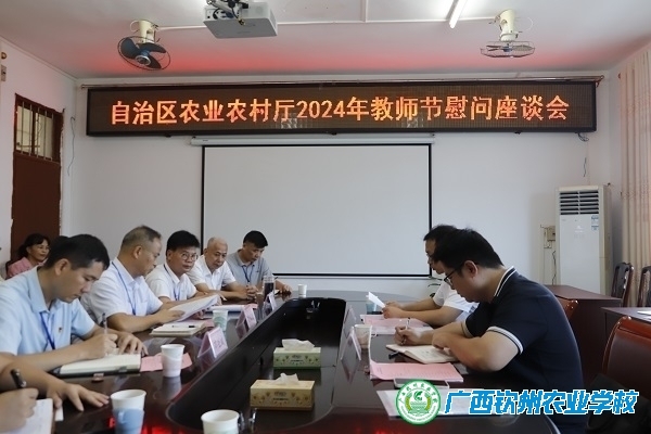 9月9日上午,在第40个教师节到来之际,自治区农业农村厅党组成员刘志颐 、厅政策改革处副处长徐延到我校开展教师节慰问活动。慰问座谈会在学校第一会议室进行。学校党委书记、校长伍国樑,副校长李运光,党委委员、副校长邓业斌出席会议。相关职能部门负责人及部分教师代表共17人参会。
