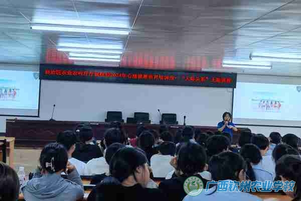 为切实推进学校心理健康教育工作,提高师生心理素质,普及心理健康教育知识,促进师生身心和谐发展。9月25日,我校在第二教学楼多功能报告厅开展了自治区农业农村厅属院校心理健康送教入校活动。活动分为两场,上午场由蓝盾心理救援中心讲师崔程程主讲,22级180名学生参加,下午场由南宁市蓝盾心理救援中心讲师组组长王玗主讲,我校全体教职工参加了活动。