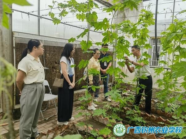 10月18日,横州市职业技术学校副校长韦颖红一行5人来到我校进行学习调研。我校教务科科长叶颜春、现代农业教学部主任邓万超等人陪同调研。