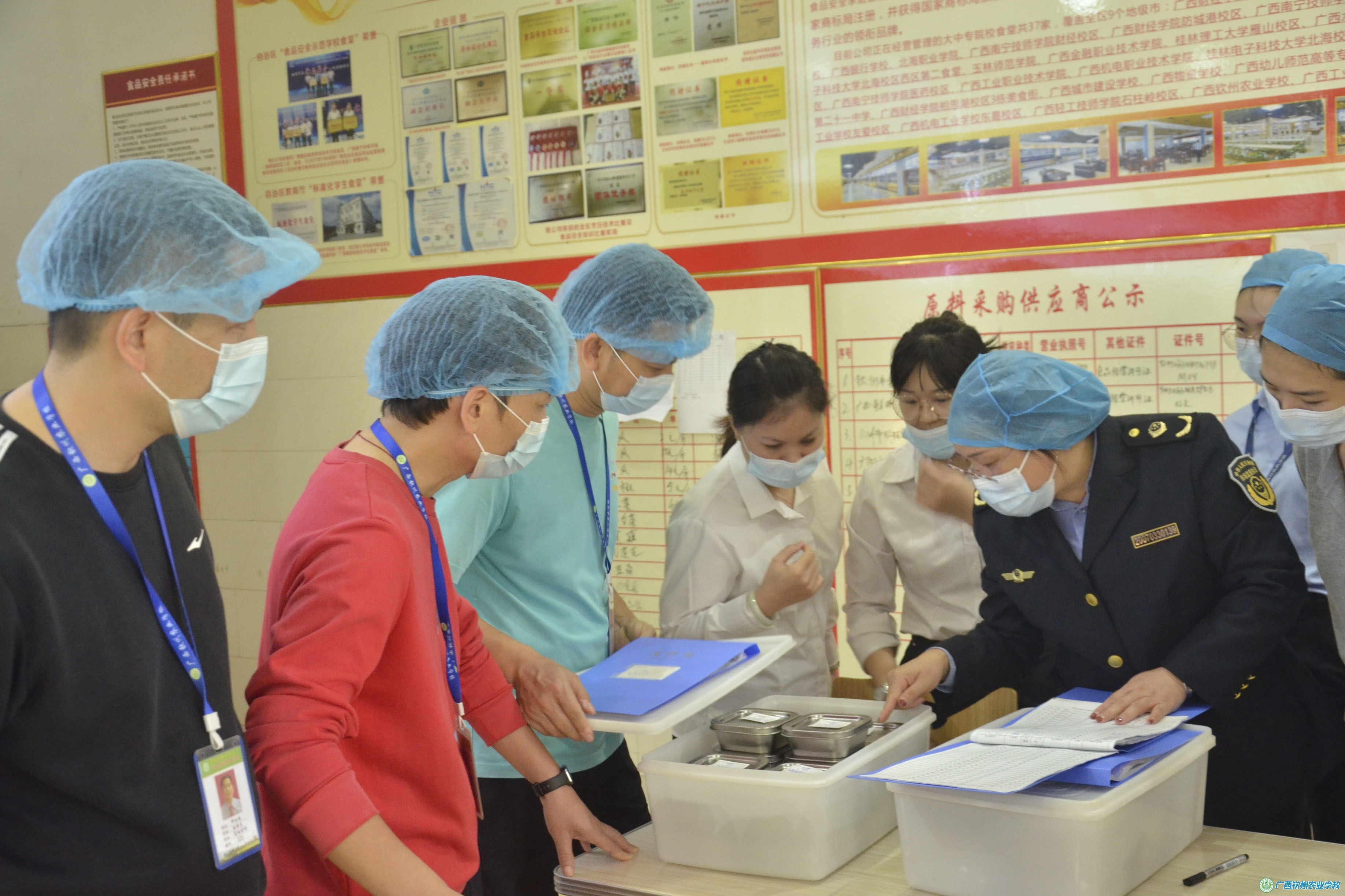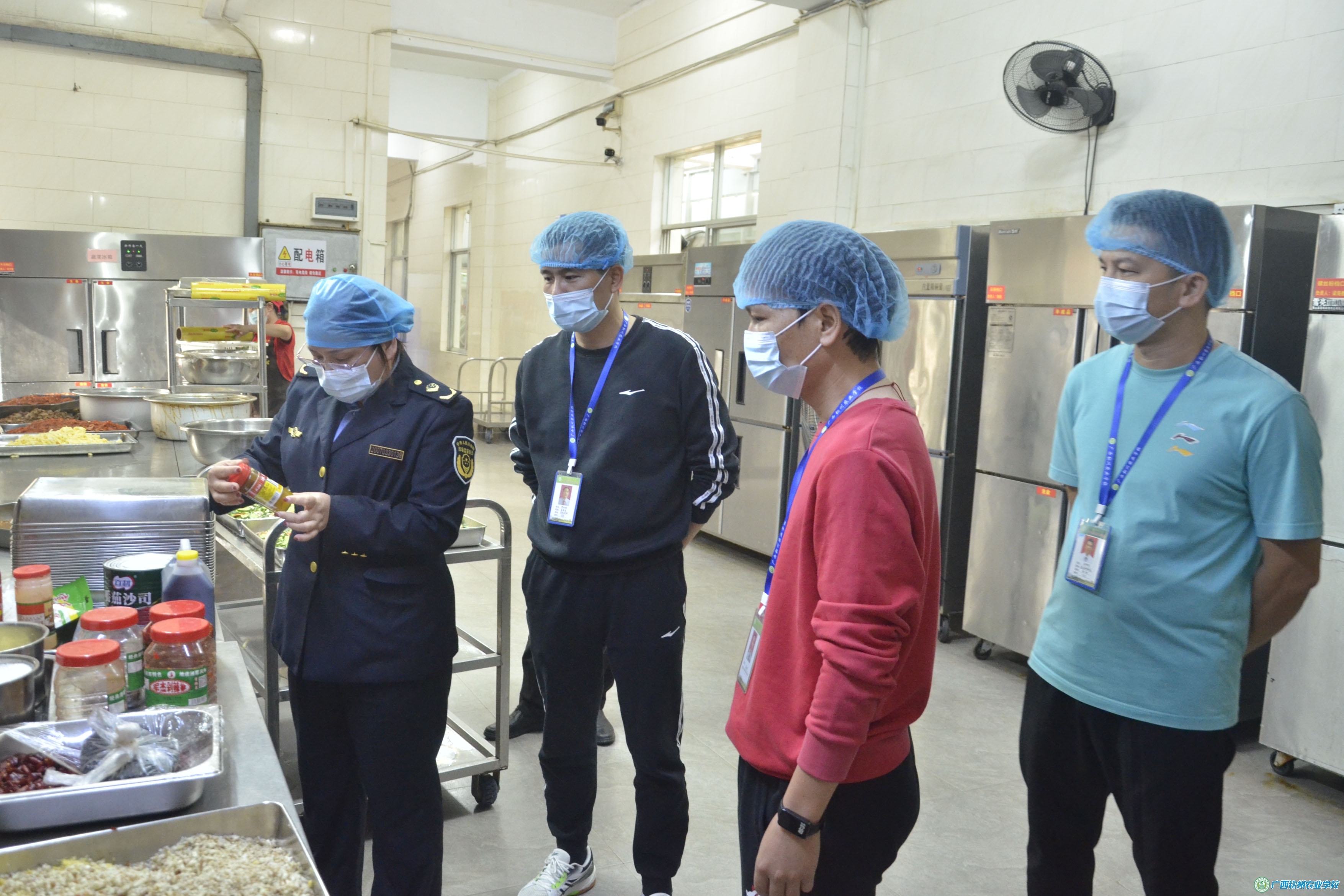 为切实保障广大师生身心健康及生命安全,杜绝学校发生重大食品安全事故,11月6日下午,钦州市钦南区市场监督管理局黄星梅股长一行3人到我校开展校园食品安全检查,学校食品安全总监、副校长邓业斌、总务科科长唐伟尤、食品安全管理员吴益民及各食堂主管等人陪同。