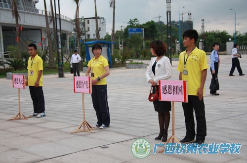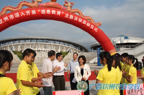 4月12日下午,在妇委会和学生科的组织下,妇委会主任黄小海带领学生会11名干部,代表我校参加钦州市“认真开展感恩教育主题活动”启动仪式。感恩教育主题活动由钦州市委宣传部、团市委、教育局、妇联等十部门联合举办,大会倡导青年学生努力践行“新三好标准”,在家做好孩子,在校做好学生,在社会做好公民。我校学生会干部团队精神风貌好,大会临时调整安排礼仪引导志愿者服务工作。参加活动的同学分别是机电101班潘光友、植保112班黄婉莲、何健霖、牧医113班谭讲庆、、黄相渊、牧医111班谭吉圆、韦小珊、金融111班刘艳珍、电子111班欧荣尚、汽车112班符艳荣、扬安妮,对他们的良好表现予以表扬。