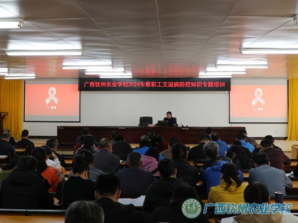 为更好地宣传普及艾滋病知识,提高教职工的防艾意识和防控能力,2024年12月25日下午我校在多功能报告厅开展了2024年教职工艾滋病防控知识专题讲座,邀请钦州市疾病预防控制中心防艾科梁峰峰副科长主讲。