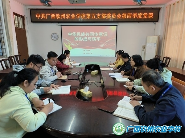 12月19日下午,副校长李运光在第一会议室为我校第五党支部全体党员、积极分子带来了一堂题为《中华民族共同体意识的形成铸牢》的党课。党委副书记、校长梁文宇在现场聆听。
