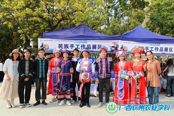 文艺表演环节结束后,全体师生接着到文化广场参加民族文化特色研学实践活动,烹饪、面点、食品加工专业的师生准备了糕点、五色米饭、油茶等美味的特色食品,幼儿保育专业以及园林专业师生制作了精美的手工和非遗作品在现场进行展示,同学们通过参与板鞋竞走、抛绣球、跳竹竿、非遗插花体验等活动领取兑换券在活动现场兑换美食、手工作品和纪念品,现场充满欢声笑语,其乐融融,师生一起在钦农度过了一个难忘的节日。