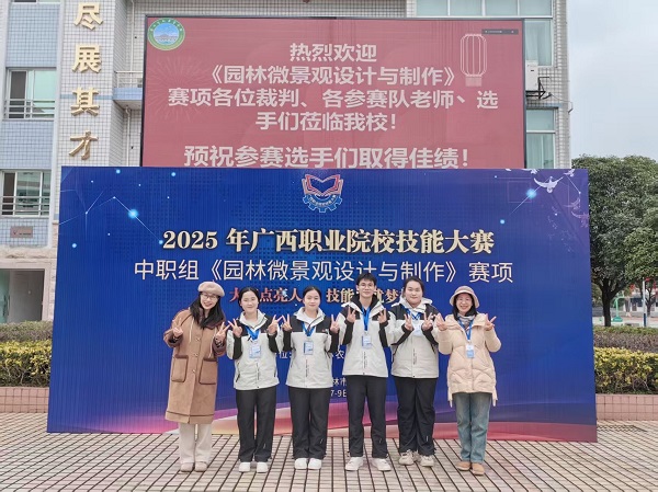 《园林微景观设计与制作组》赛项选手与指导老师合影