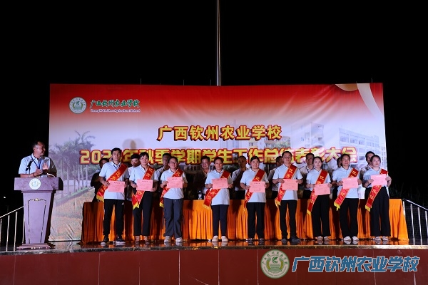 表彰大会在雄壮的国歌声中拉开了序幕。首先,团委书记张小鹏宣读《广西钦州农业学校关于表彰2024年秋季学期团工作先进集体及先进个人的决定》,学生科科长陈贵才宣读《广西钦州农业学校关于表彰2024年秋季学期学生工作先进集体及先进个人的决定》。接着,领导们为获奖的班级及个人颁奖,奖项涵盖“先进班集体”“优秀学生干部”“劳动积极分子”“文明宿舍”等,覆盖学生会、班级、社团等多个层面。