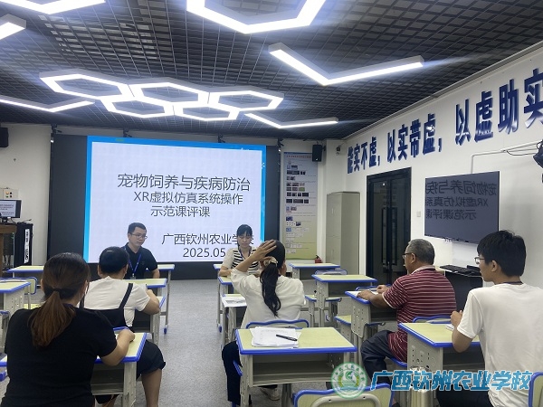 2025年5月13日,广西钦州农业学校现代农业教学部莫志莲老师在二训虚拟仿真机房开展《宠物饲养与疾病防治》课程思政教学示范课展示,授课班级:畜产231班。
