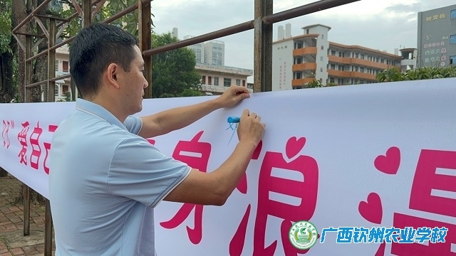 邓业斌副校长在心理健康倡议横额签名