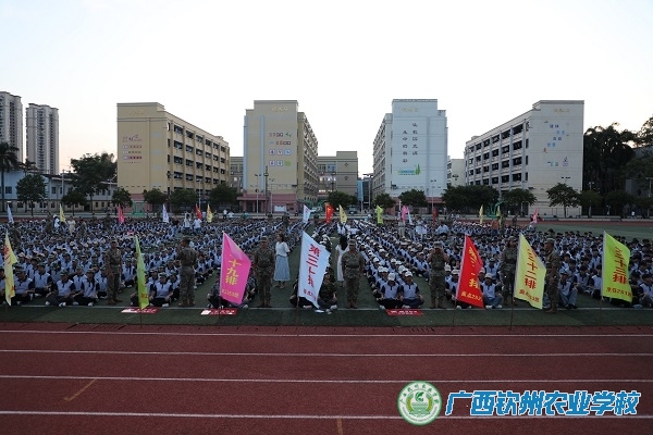 随着指令下达,42支队伍依次迈着铿锵步伐入场。从停止间转法到齐步、正步行进,新生们动作利落、步伐统一,每一个摆臂、每一次踢腿都精准有力;嘹亮的口号响彻夜空,挺拔的身姿在灯光下尽显青春朝气,充分展现了军训期间的扎实成果与农校学子的精神风貌。5位评委认真观摩,对照评分细则对各队伍表现进行细致评判。
