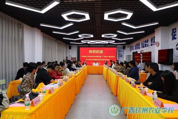 11月7日上午9时,广西师范大学职业技术师范学院与广西水产畜牧学校2025年骨干教师综合能力提升培训班交流座谈会在我校二训一楼仿真室顺利召开。本次座谈会以“校企深度合作—技能型人才培养新模式”、“中职对口升学考试的做法”及“双优建设”为主题,旨在促进校际经验共享,共谋职业教育高质量发展。座谈会由广西师范大学职业技术师范学院容华主持,广西水产畜牧学校党委副书记、纪委书记、副校长莫有东等48名骨干教师,我校党委书记伍国樑及相关部门负责人9人共同参与。