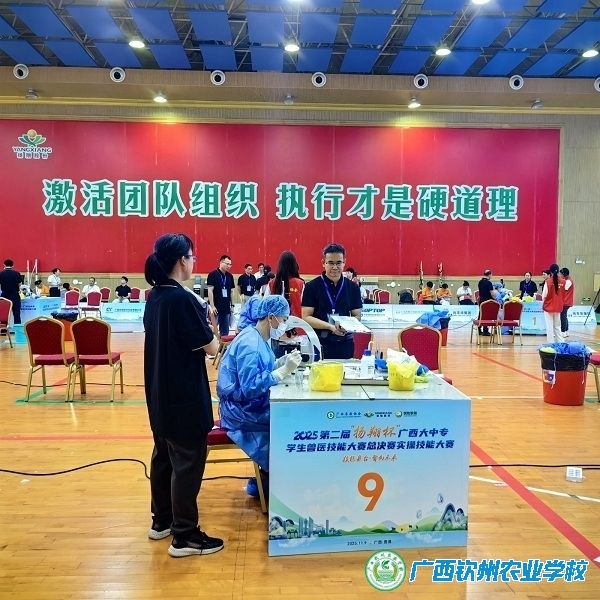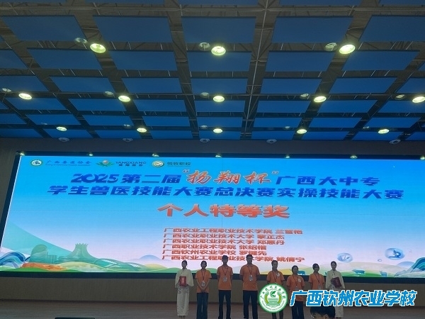 11月9日,2025年第二届“扬翔杯”广西大中专学生兽医技能大赛在贵港市隆重落幕。由畜禽生产技术专业黄毅、韦孜娜、刘春3位指导老师带领的参赛团队荣获团队二等奖,参赛选手畜产243班罗键先成功斩获个人特等奖,马正辉、曾锦平分别取得个人二等奖,同时也展现了我校学子在兽医专业领域的过硬素养。