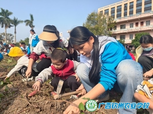 为让孩子了解农耕文化,亲近自然,体会农耕的艰辛与丰收的喜悦,12月4日—5日在我校教务科的协调下,钦州市第五幼儿园225名小朋友在30多名教师和家长的陪同下,来我校开展“亲近自然、乐享农耕”的主题研学活动。在幼儿保育专业学生的引导下,孩子们先后参观昆虫馆、农史馆,体验了挖红薯的乐趣,既开阔视野,又培养了劳动意识,让孩子在轻松有趣的氛围中感受农耕文化。
