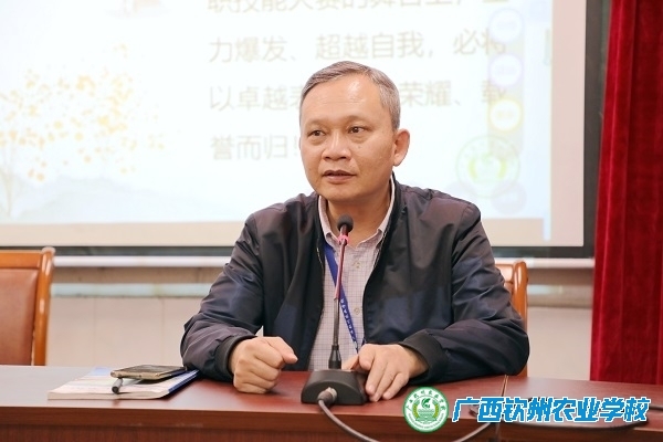 为进一步激发学生技能学习热情,全力备战市级职业技能大赛,12月9日下午,我校在教阶梯教室组织召开了2025年钦州市第十四届中等职业学校技能大赛赛前动员会。校长梁文宇出席,教务科负责人杨祖闹、副科长李彬彬、赛项领队以及指导老师参加了动员会。会议由教务科负责人杨祖闹主持。