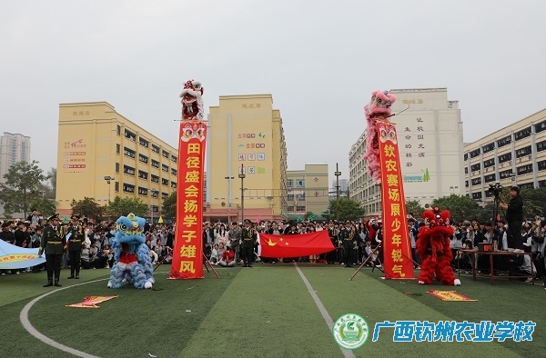 最后,伍国樑书记以洪亮的声音宣布:“广西钦州农业学校第十四届田径运动会开幕!”霎时间,掌声雷动,彩烟燃放,将现场气氛推向高潮。开幕式在精彩的文艺表演后圆满结束,各代表队有序退场,紧张激烈的比赛正式拉开战幕。
