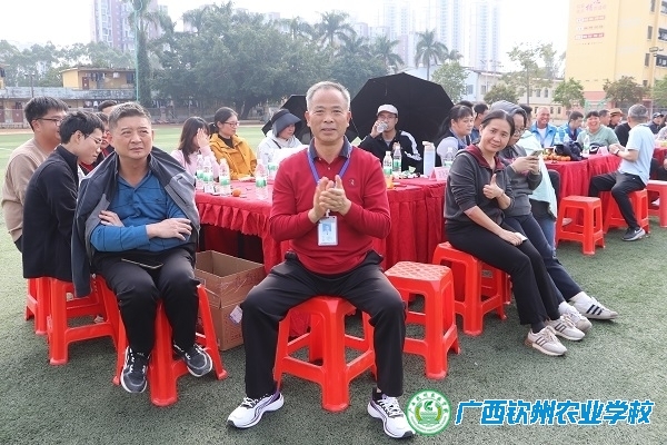 学校党委书记伍国樑在运动会现场为运动员加油打气
