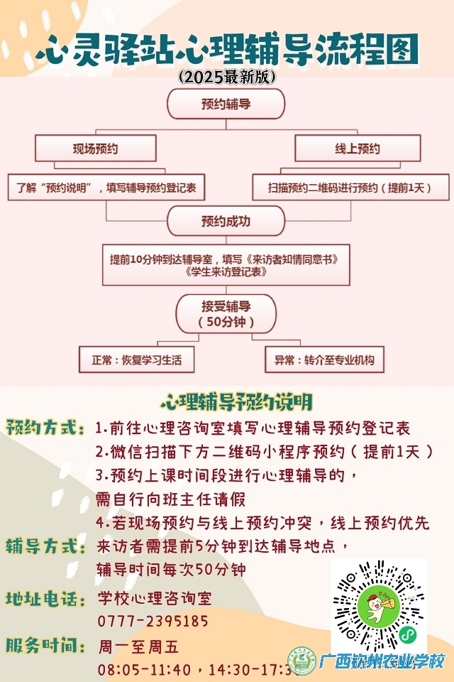 寒假已至,岁末迎春。广西钦州农业学校心理咨询室为您精心准备了一份《寒假心理健康指南》,希望能帮助大家度过一个充实、平和、温暖的假期。