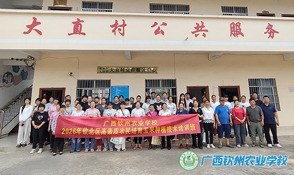 4月8日,由我校承办的2026年钦北区高素质农民培育玉米种植技术培训班在钦州市钦北区大直镇大直村委会顺利开班,大直村委50名种植户学员参加培训。