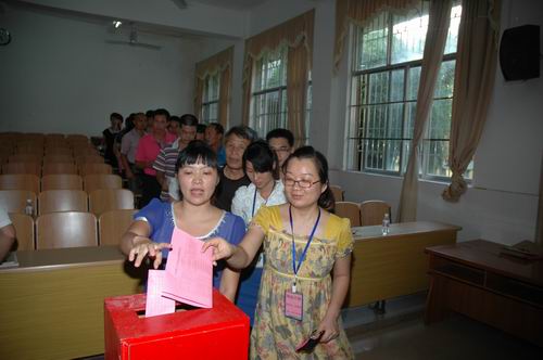 大会首先由伍国樑副校长(主持工作)细致地解读了我校2012年庆祝教师节的活动方案,强调了“教职工评优大会”只是我校庆祝教师节系列活动之一,要求全体教职工要高度重视、精心组织活动;发扬崇德尚能、促教风学风新跨越。接着,大会通过民主投票的方式,选举产生了2011—2012学年度“十佳优秀教师”、“十佳优秀班主任”和先进教育工作者。